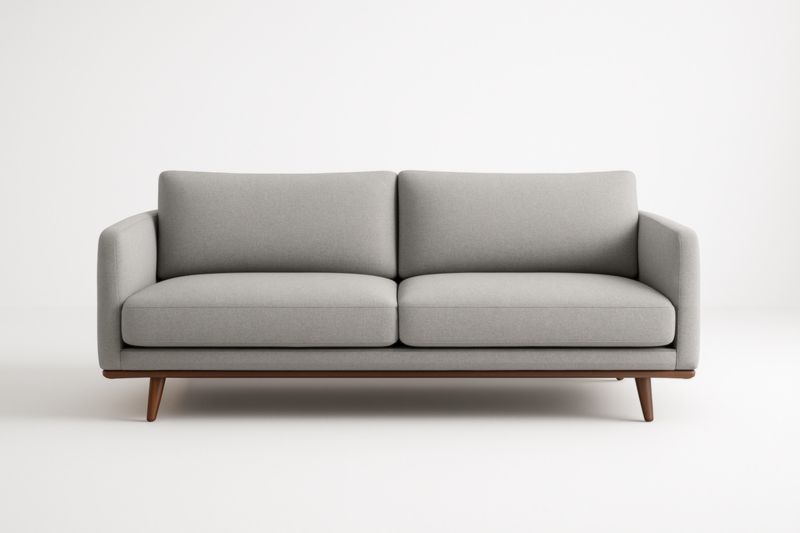 Divano due posti in tessuto poliestere grigio con gambe in legno
