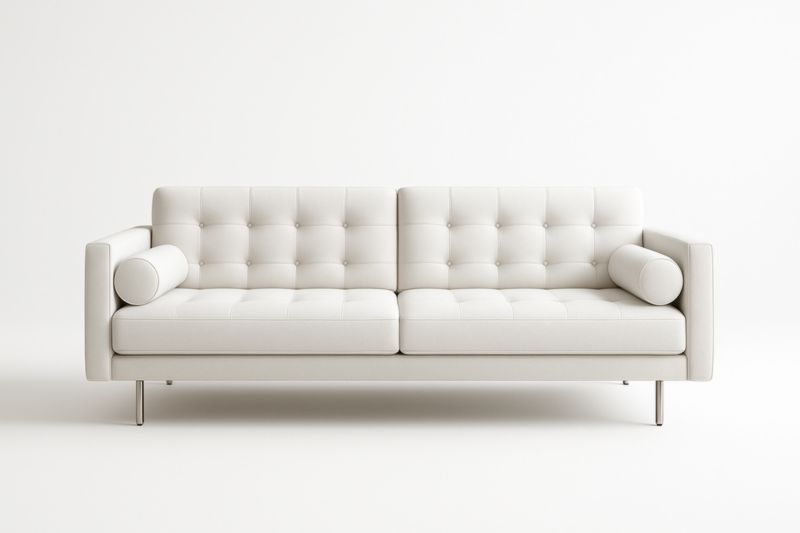 Divano due posti in ecopelle bianca con gambe in acciaio inox